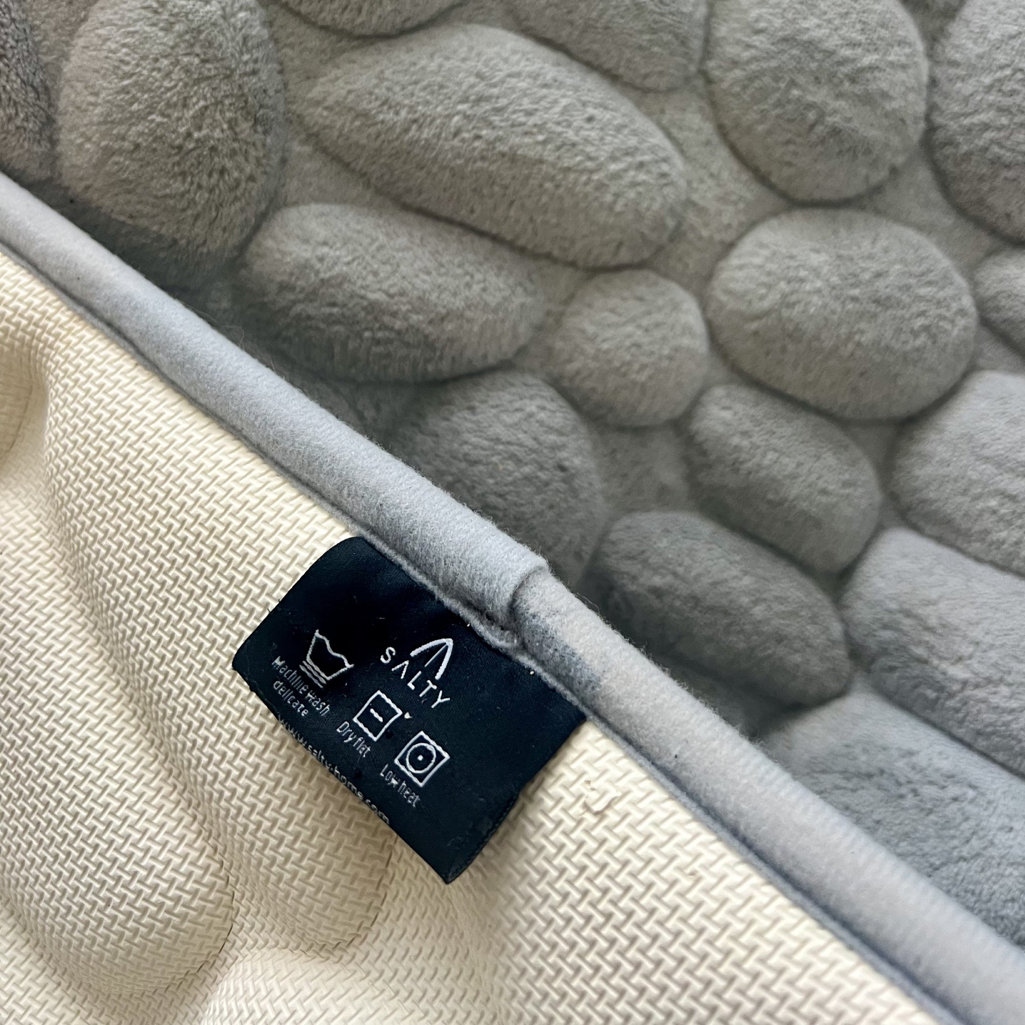 Experience the ultimate comfort with our ultra-soft pebble bathroom mat. Walk on super-cushiony stones and enjoy a daily anti-stress foot massage in your own bathroom. This soft pebble mat brings a little cloud of happiness to your home, making every step a moment of relaxation. An original creation by SALTY Home.