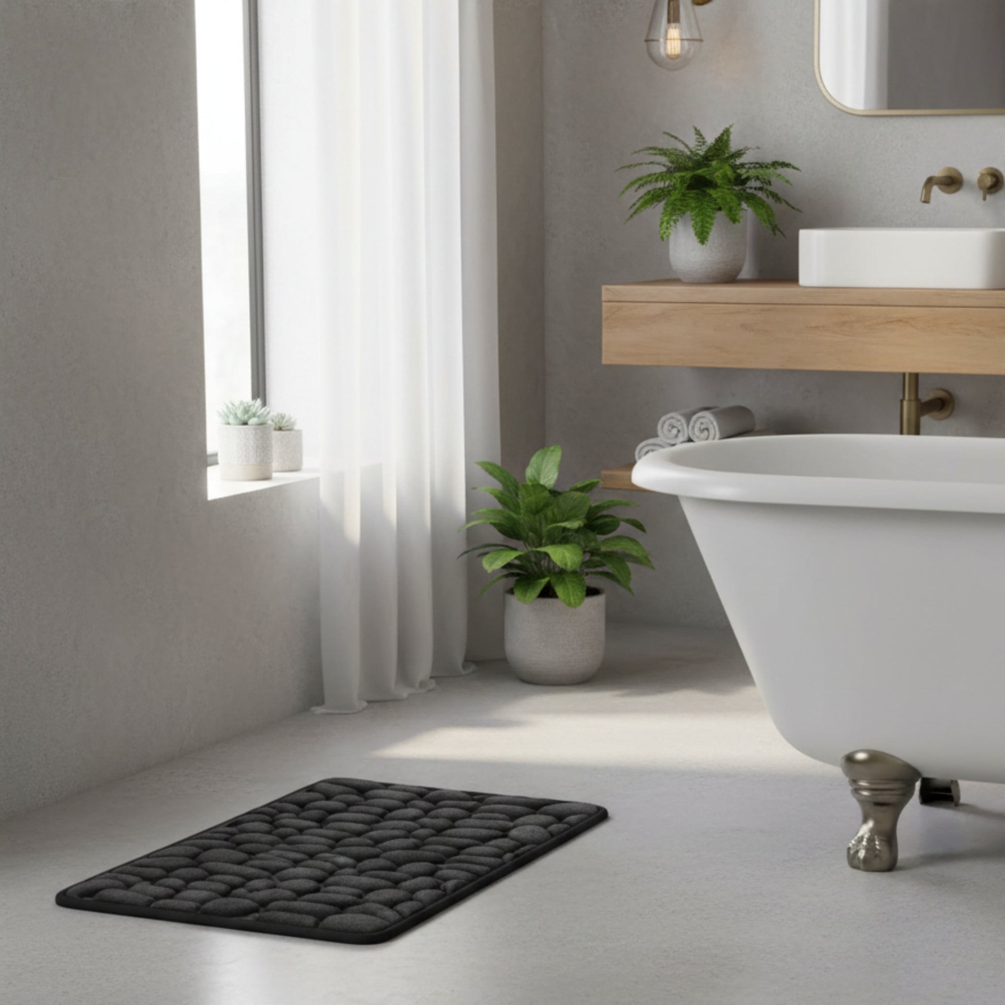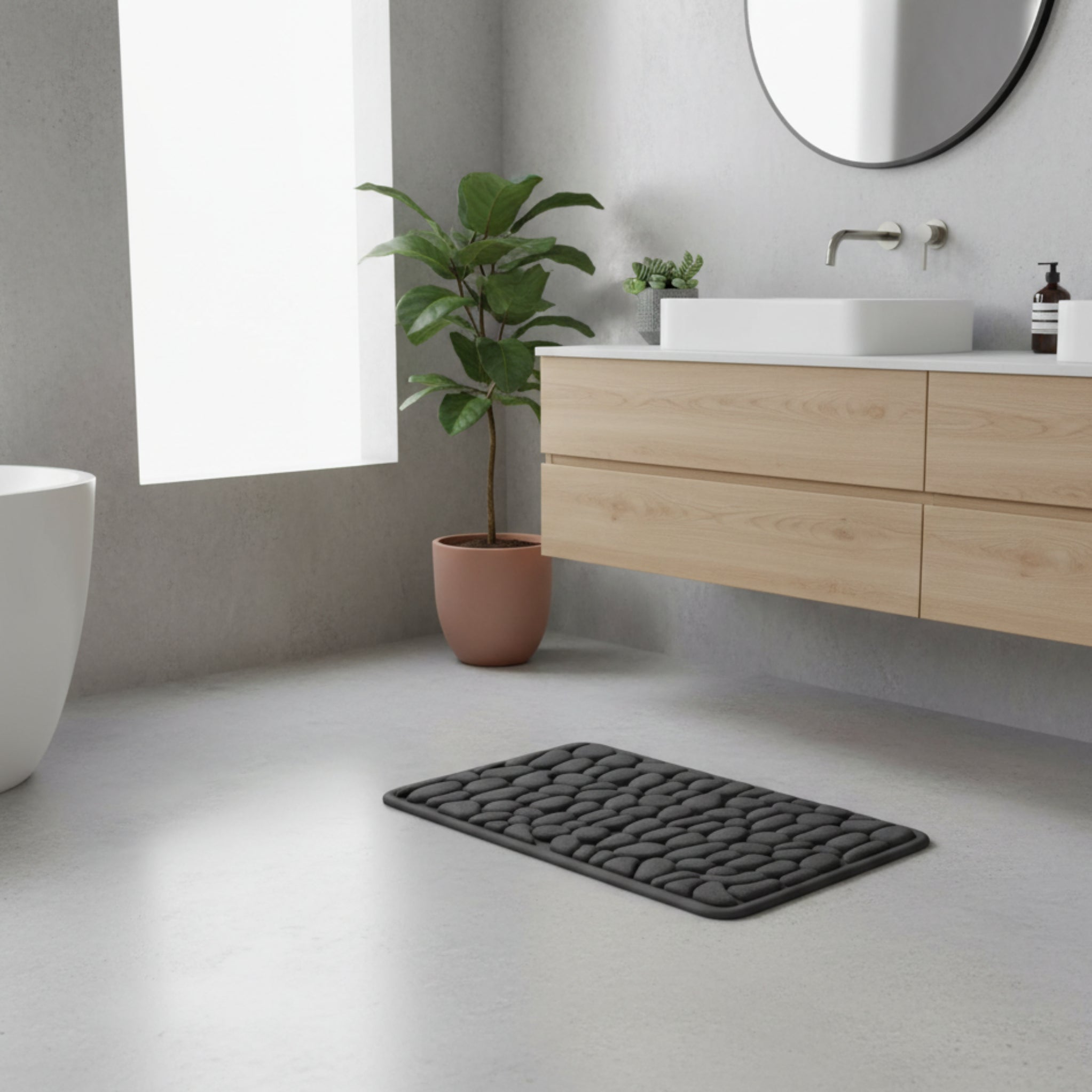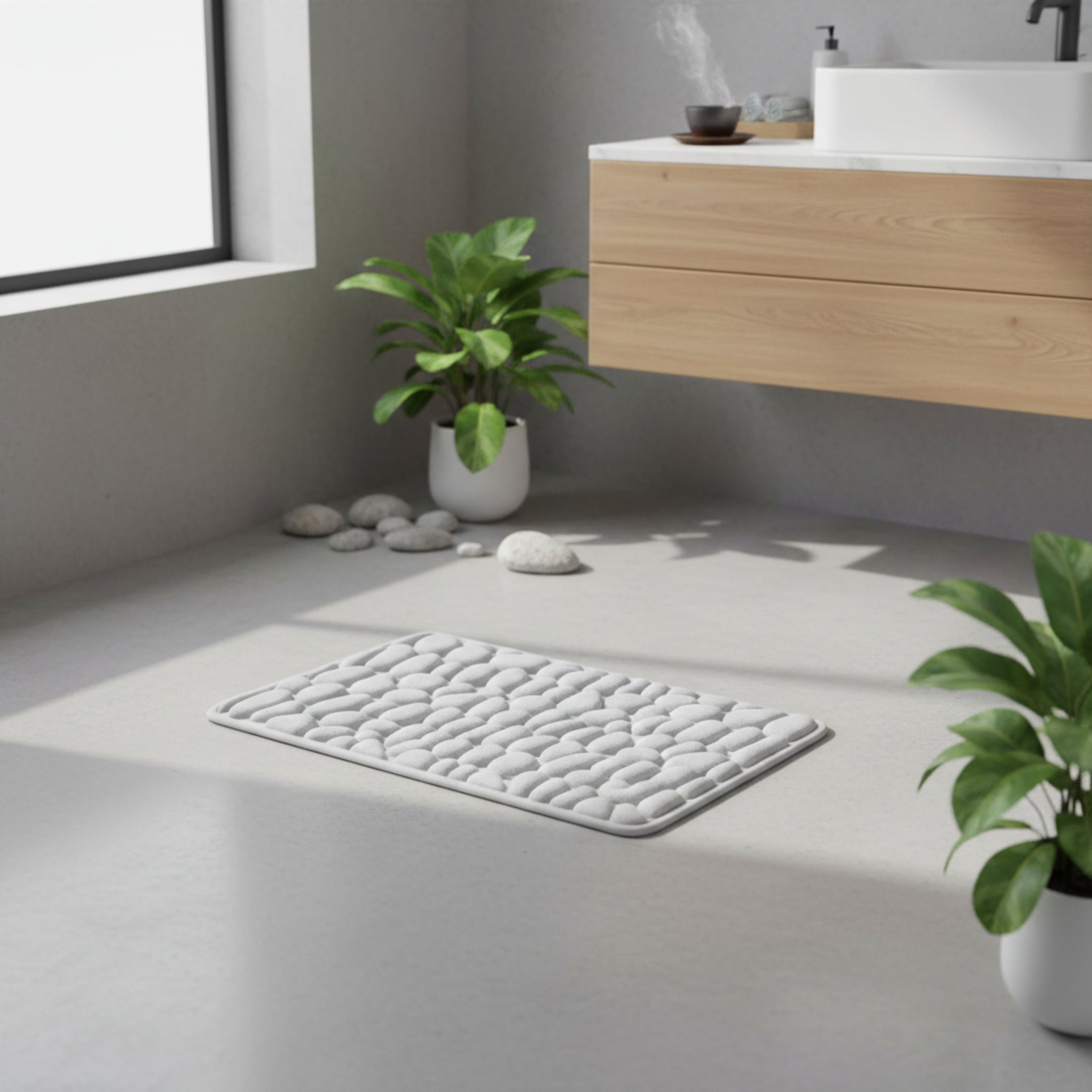 Bring the serenity of the ocean into your bathroom. Our pebble bath mat is inspired by the soothing textures and colors of natural sea stones, letting you experience a spa-like coastal vibe every day. Step onto its soft, plush pebbles and feel as if you’re walking along the shore, turning your daily routine into a relaxing seaside escape.